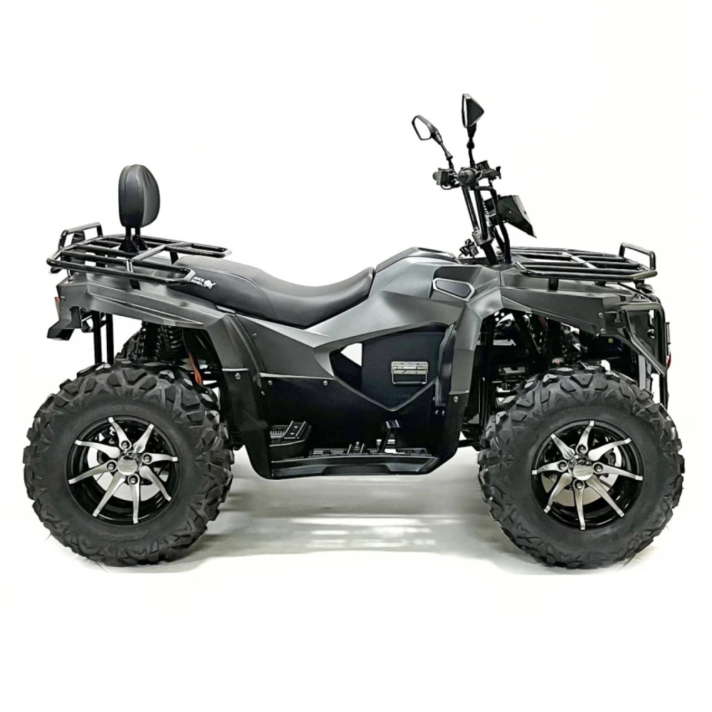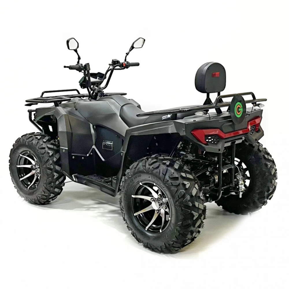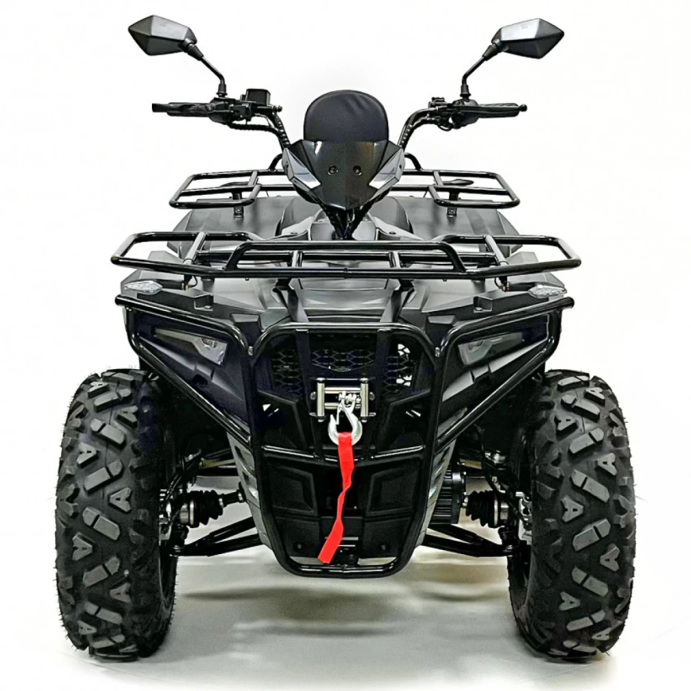 Двигатель квадроцикла – это высокоэффективный PMSM мотор мощностью 10 кВт, который обеспечивает динамичное ускорение и плавное распределение мощности. Максимальная скорость достигает 70 км/ч, что позволяет уверенно передвигаться как по проселочным дорогам, так и по легкому бездорожью, а максимальная нагрузка в 200 кг открывает широкие возможности для перевозки пассажиров и грузов. Дополнительные опции, такие как фаркоп и лебедка, значительно расширяют функциональные возможности транспортного средства, делая его незаменимым помощником в самых разнообразных ситуациях.