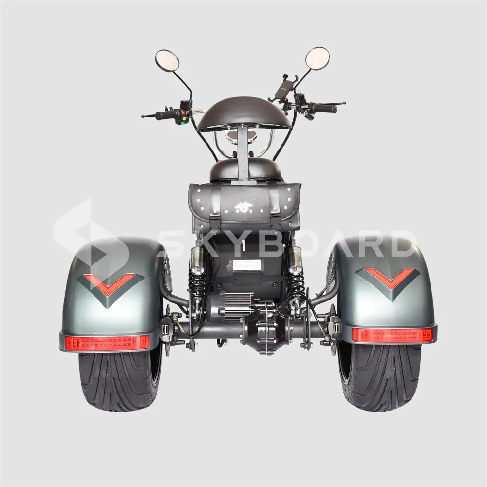 Электроскутер SKYBOARD TRIKE CHOPPER-4000 PRO FAST – мощный и эксклюзивный, первое, что приходит на ум при визуальном ознакомлении с техникой. Изогнутая рама, брутальный дизайн наталкивают на мысли о максимальных скоростях и непередаваемых ощущениях. Со слов производителя предчувствие клиентов является правильным.