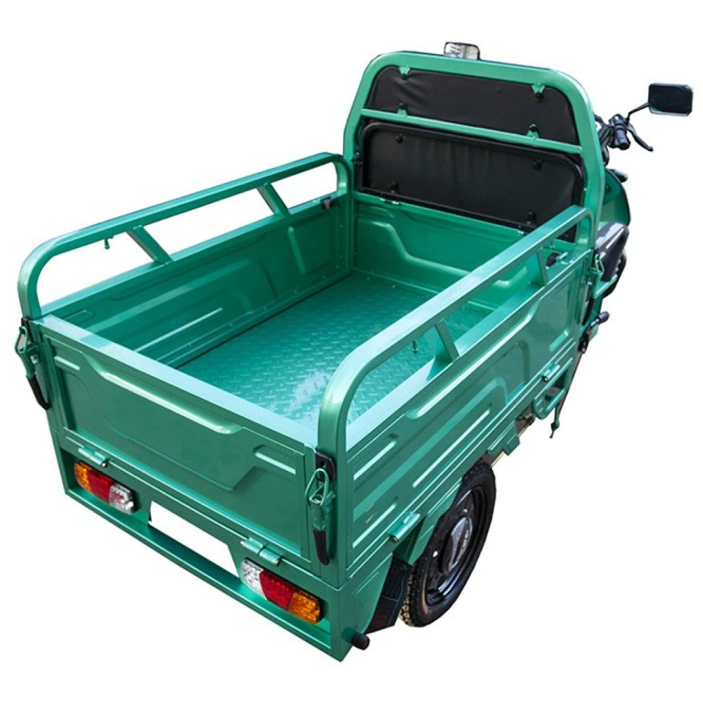 Модель представлена надежным двигателем 800 Вт и развивает скорость 25 км/час. Маневренность и сверхпроходимость обеспечивается гидравлической вилкой передней подвески с амортизацией. Достоинства и плюсы грузового электротрицикла несомненно оценят настоящие мужики. Мощная рама рассчитана на перевозку грузов 400 кг (110 кг сухого веса). Рулевую часть и широкое сидение можно регулировать по росту райдера для удобства поездок. Мощная батарея долго держит заряд и быстро заряжается за 8-10 часов. В кузове по необходимости можно устанавливать дополнительное пассажирское сидение. Оригинальная тормозная система позволяет быстро остановиться в форс-мажорных ситуациях.