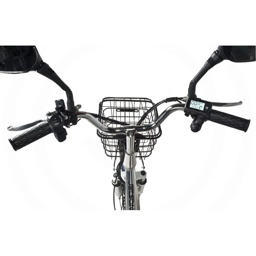 Техника представлена надежной конструкцией, изготовлена из прочного и легкого алюминия. Производитель позаботился об улучшении скоростных характеристик, обеспечив электровелосипед задним приводом. Быстросъемный литий-ионный аккумулятор обеспечивает запас хода на одном заряде до 100 км. Для простоты управления и возможности ориентироваться на местности техника оснащена современным бортовым компьютером. Абсолютная безопасность поездок обеспечивается наличием передних барабанных и задних гидравлических тормозов. Возможность перейти на педальный режим предотвращает возникновение аварийных и непредвиденных ситуаций.