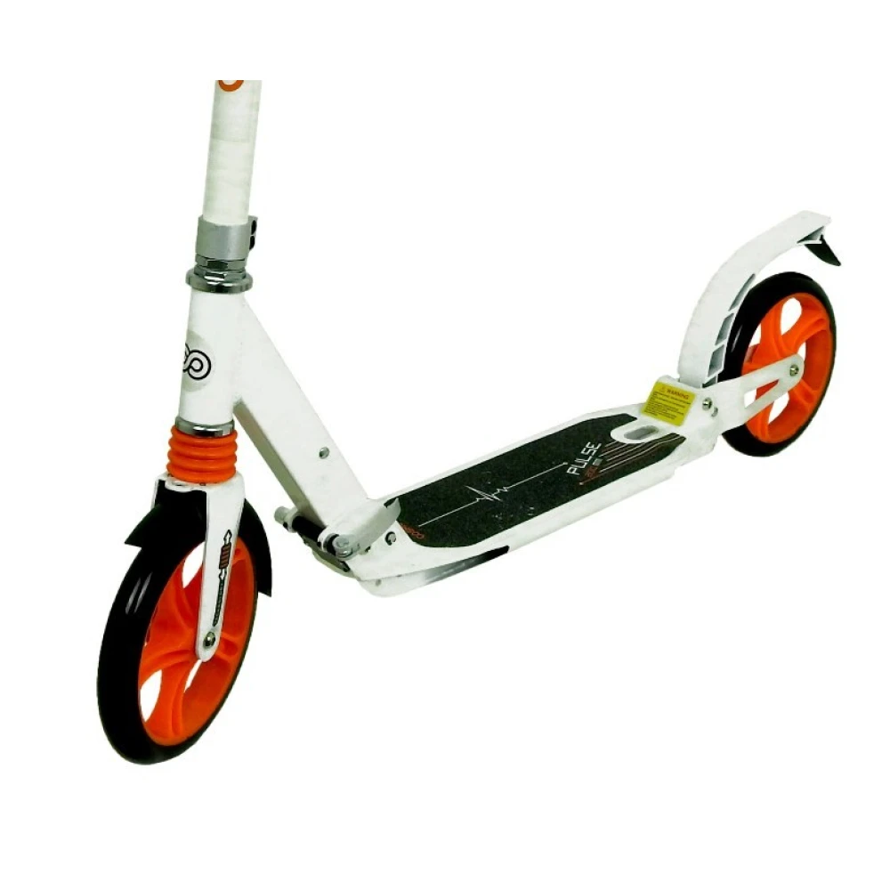 Благодаря широким и жестким колесам из полиуретана в диаметре 200 мм и амортизации сохранятся накат и обеспечивается устойчивость и маневренность самоката на поворотах.
