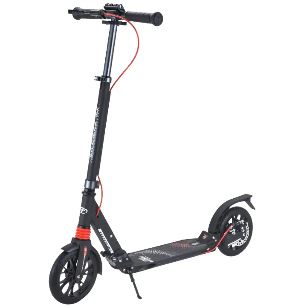 Визуально самокат ничем не отличается от взрослого. Модель оснащена мало стираемыми колесами, передними и задними амортизаторами, делающими движение плавным и беспроблематичным. Характеристики самоката обеспечивают безопасную скоростную езду по городской местности и парковой зоне.
