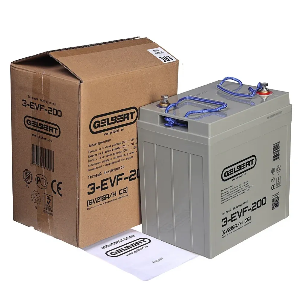 Тяговый аккумулятор Rutrike Gelbert 3-EVF-200 (6V215A/H C5) – это современное и надежное решение для грузовых трициклов и складской техники. С напряжением 6 В и ёмкостью 215 А·ч по схеме С5, данный аккумулятор гарантирует длительный срок службы и стабильное питание даже при интенсивном циклическом использовании. Его компактные размеры – 260 мм в длину, 180 мм в ширину и 285 мм в высоту, а также вес 35 кг позволяют легко интегрировать его в конструкцию различной техники. Продукт, входящий в серию EVF, отличается высокой эффективностью, надежной конструкцией и продуманной эргономикой, что делает его оптимальным выбором для профессионалов, ценящих качество и долговечность. Rutrike Gelbert 3-EVF-200 успешно справляется с задачами по тяговому питанию, обеспечивая бесперебойную работу оборудования в самых суровых условиях эксплуатации, будь то транспортировка грузов или работа в условиях склада. Благодаря инновационным технологиям производства и строгому контролюRutrike  качества, этот аккумулятор заслуживает доверия и является надежной опорой для любой техники, требующей стабильного и мощного источника энергии.