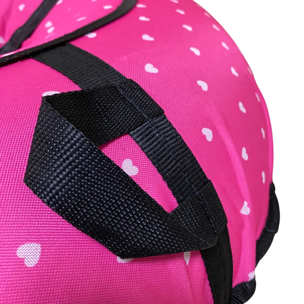 Тюбинг ПОКАТУШКИ диаметром 0,95 метра — это отличный способ добавить ярких эмоций в ваши зимние развлечения! С нежным дизайном в виде сердечек, этот тюбинг станет настоящим украшением зимних забав и поднимет настроение не только вам, но и окружающим. Прочные эргономичные ручки обеспечивают надежный захват, позволяя вам уверенно спускаться с горок и наслаждаться каждым моментом. С весом всего 2,1 кг, он легок для транспортировки и хранения, а буксировочный ремень упрощает процесс передвижения по снегу. Этот тюбинг идеально подходит для катания с друзьями и семьей, создавая незабываемые воспоминания и радость от совместного отдыха. Подарите себе и своим близким удовольствие от зимних приключений с тюбингом ПОКАТУШКИ!